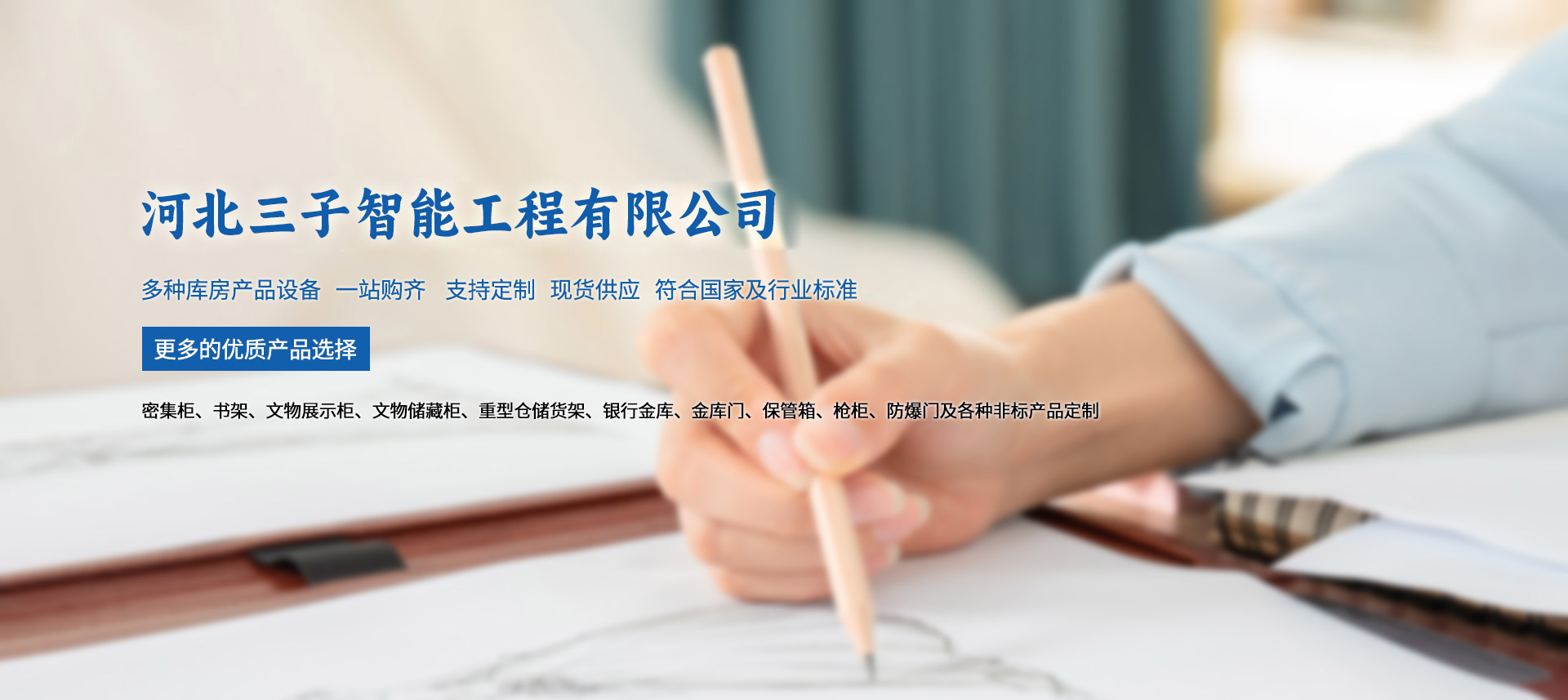 河北三子智能工程有限公司主營(yíng)密集柜、書架、文物展示柜、文物儲(chǔ)藏柜、重型倉(cāng)儲(chǔ)貨架、銀行金庫(kù)、金庫(kù)門、保管箱、槍柜、防爆門及各種非標(biāo)產(chǎn)品定制。我們集研發(fā),設(shè)計(jì),生產(chǎn),銷售和服務(wù)于一體,擁有國(guó)內(nèi)先進(jìn)的設(shè)備和專業(yè)的制作團(tuán)隊(duì),我們秉承踏實(shí),創(chuàng)新,責(zé)任的企業(yè)精神服務(wù)于檔案存儲(chǔ),倉(cāng)儲(chǔ)物流,農(nóng)業(yè)部,博物館,美術(shù)館,銀行,部隊(duì),學(xué)校等多個(gè)領(lǐng)域,我們始終堅(jiān)持用戶至上和精益求精為客戶提供優(yōu)質(zhì)的產(chǎn)品及服務(wù)。